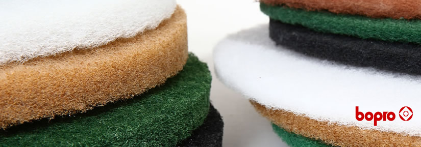Pads sind Reinigungshilfen, die üblicherweise in kreisrunder oder rechteckiger Form angeboten werden. Sie bestehen aus einem Gemisch aus Poylester- und Nylonfasern, was ihnen eine feste, beständige Form bei „luftiger“ Konsistenz verleiht.